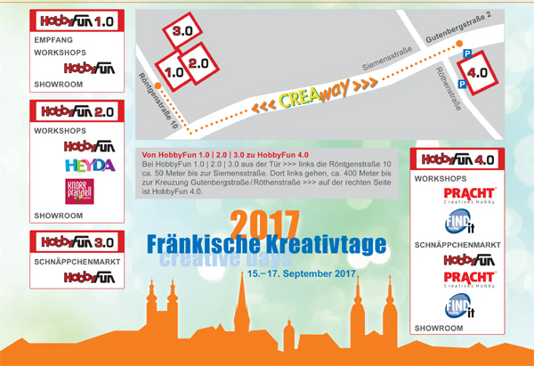 Dort werden die Firmen Pracht und FindIt mit einem erweiterten Workshop- und Präsentationsangebot sowie mit eigenen Schnäppchenmärkten aufwarten. Am bisherigen Standort in der Röntgenstrasse 10 werden sich HobbyFun, Knorr-Prandell und Heyda mit umfangreicheren Workshop- und Ausstellungsflächen sowie mit dem HobbyFun - Schnäppchenmarkt präsentieren.